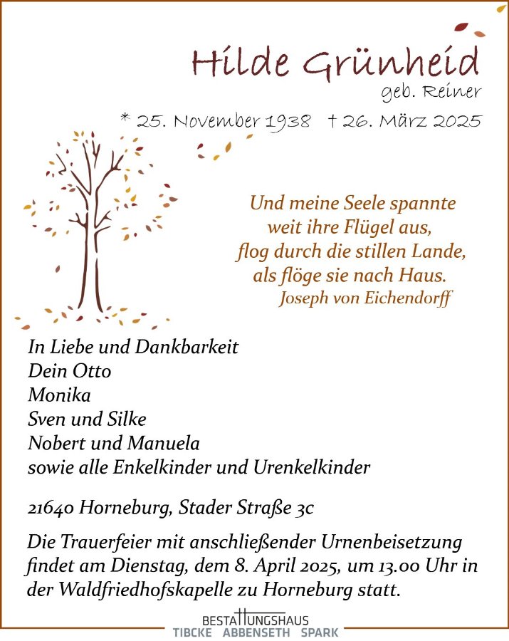 Trauerfeier mit Urnenbeisetzung, Waldfriedhof Horneburg