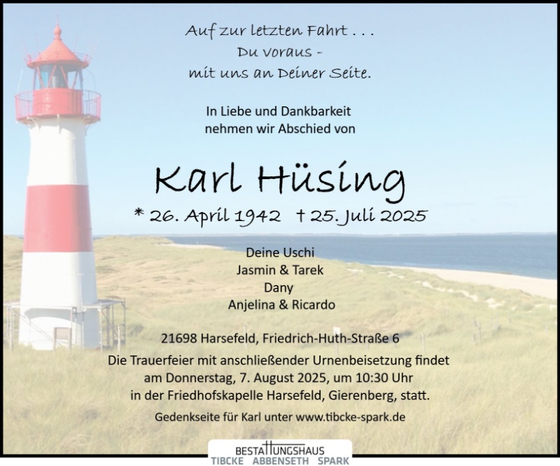 In diesen schweren Tagen möchten wir Ihnen unser herzliches Beileid aussprechen. Wir wünschen Ihnen viel Kraft in dieser schweren Zeit.