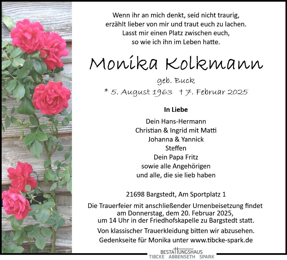 Monika Kolkmanngestorben am 7. Februar 2025