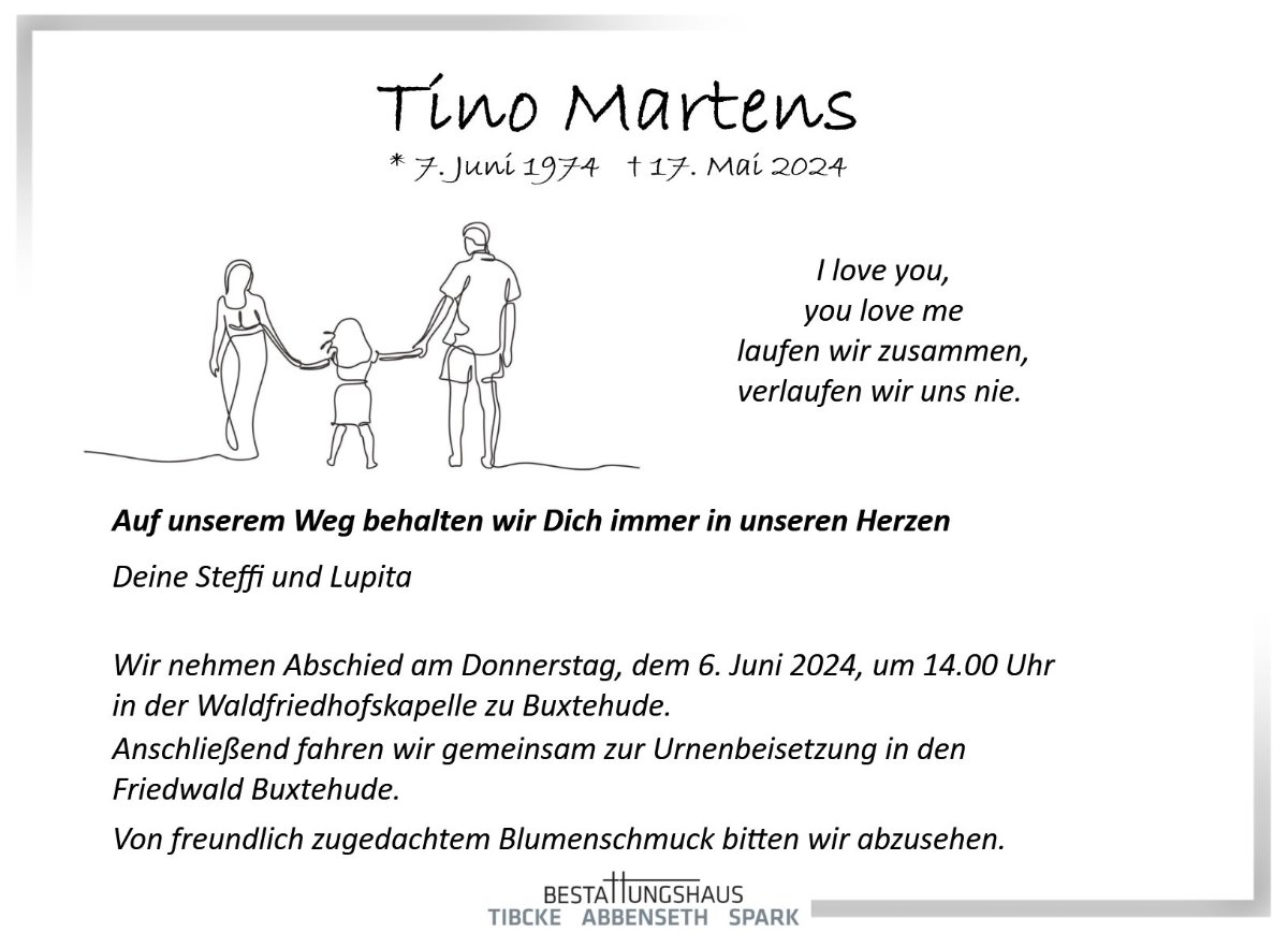 Tino, Du fehlst mir jeden Tag und das für den Rest meines Lebens.